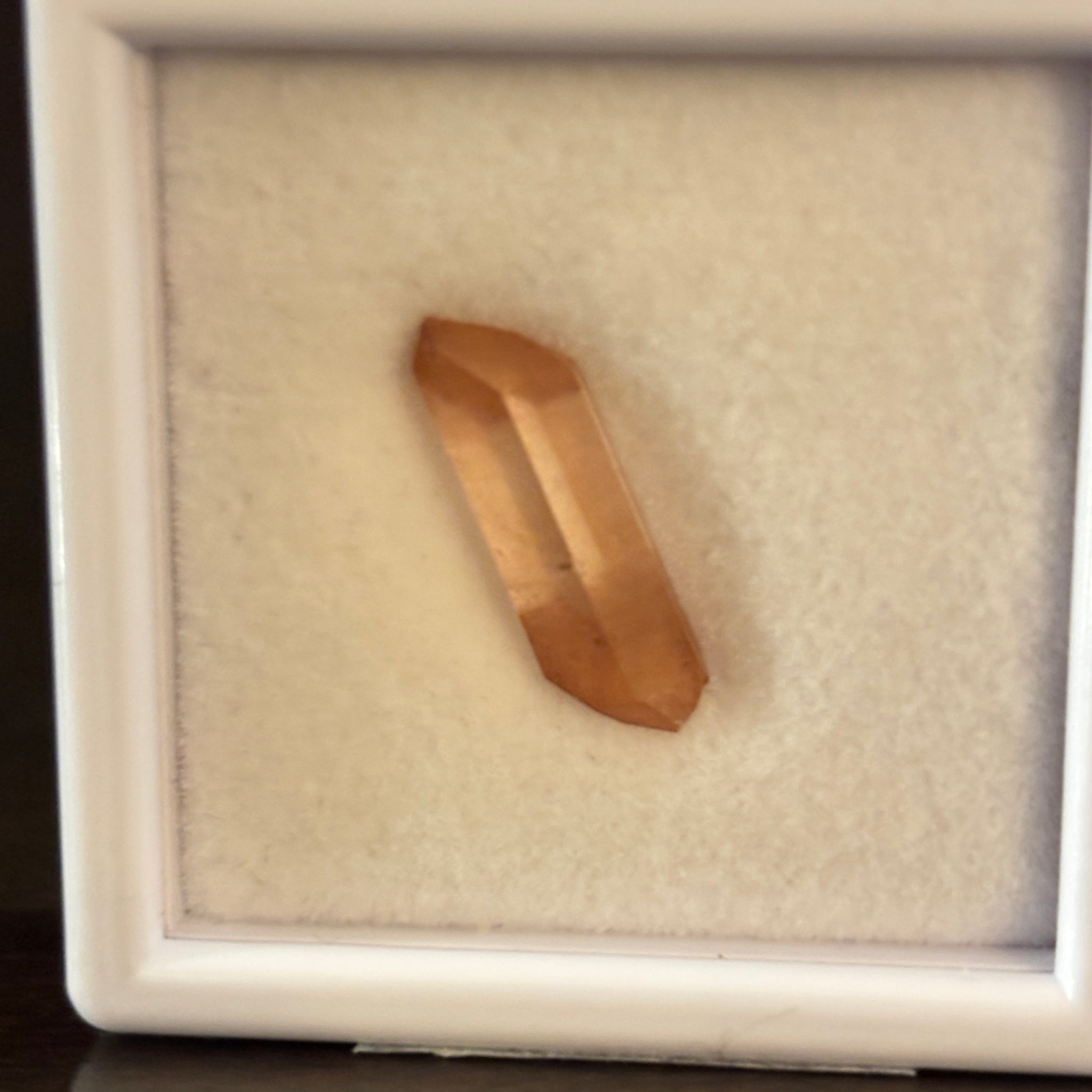 Tangerine double-terminated quartz crystal point, authentic Quebec crystal with unique colors. Tangerine hue, double point. Quartz crystal points are natural and...
